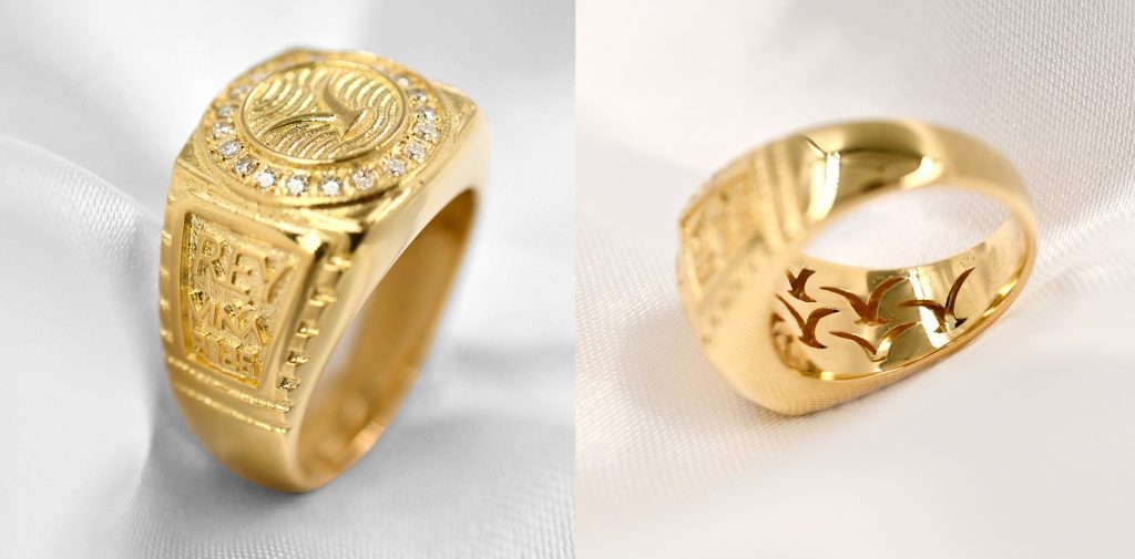La evolución material también se expresa en el anillo oficial del rey de Viña 2026, confeccionado en oro amarillo de 18 quilates, con un peso de 18,30 gramos y engastado con brillantes de alta calidad.