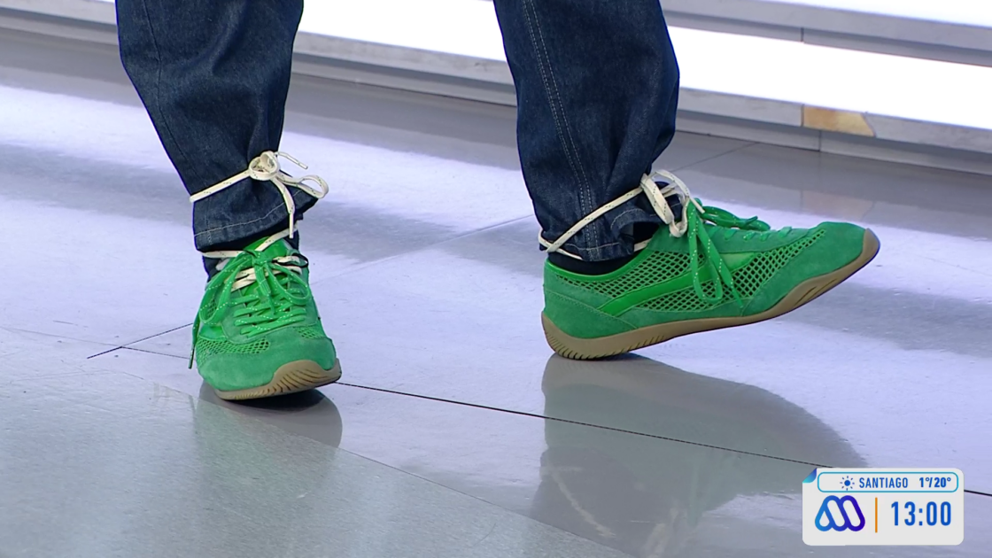 Y es que el periodista apareció en pantalla con su clásico estilo de camisa y jeans, pero sorprendió con unas llamativas zapatillas verdes, que llevaban dos cordones: uno del mismo color y otro blanco.