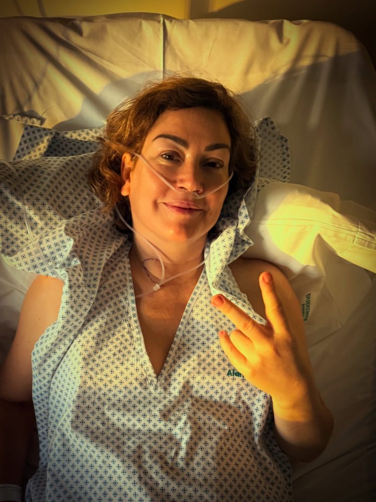 Mediante sus redes sociales, la actriz sostuvo que “se va el huevito tumor (grande igual) y con eso ojalá que también se vaya el cáncer de tiroides”.