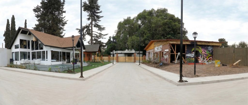 El espacio incluye una calle, cuatro casas, una plazoleta y una sede social, todos completamente funcionales. Se trata de la mayor superficie construida para un reality en Chile.