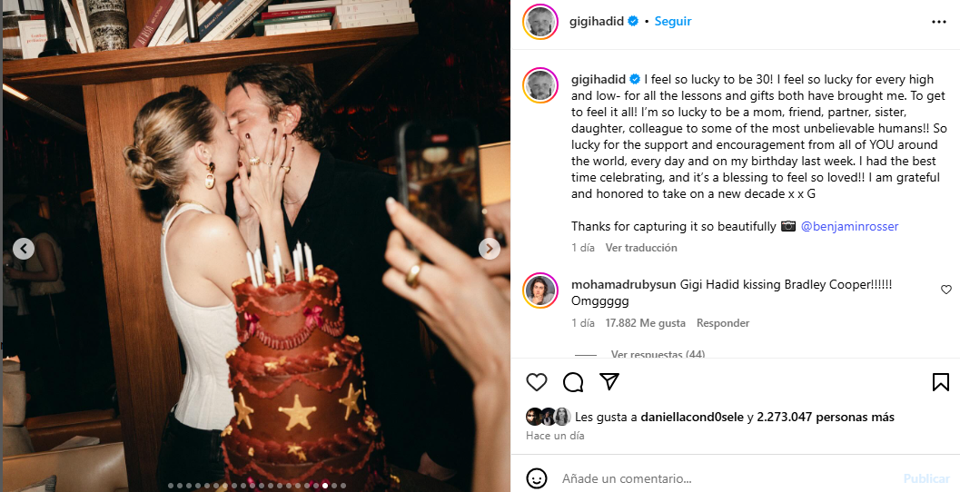 Por último, Gigi Hadid postuló: “¡Me lo pasé de lo mejor celebrando, y es una bendición sentirme tan querida! Estoy agradecida y honrada de tomar una nueva década “.