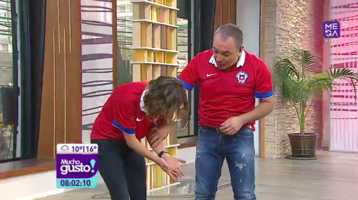 Calentando los motores de cara al partido de Chile frente a Perú, el Mucho Gusto fue fiesta durante prácticamente toda la mañana. Todos los rostros vestidos con la camiseta de La Roja hasta se dieron licencia para revelar algunos eventos bochornosos de sus colegas.