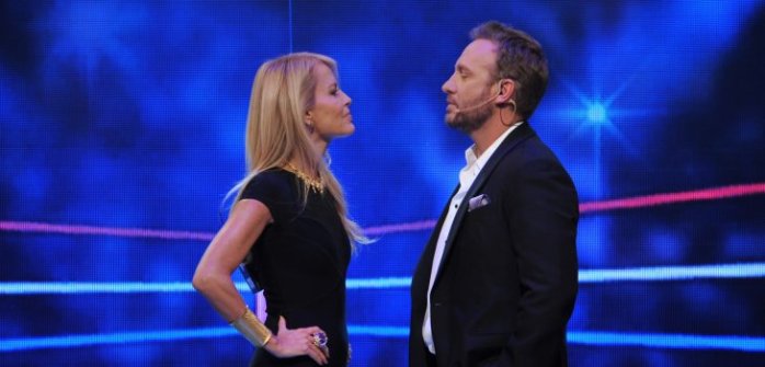 En medio de los dimes y diretes entre el ex futbolista y el parlamentario, brilló la animadora Cecilia Bolocco, quien lucía muy elegante con un ceñido vestido negro y un enorme collar de oro blanco y piedras preciosas.