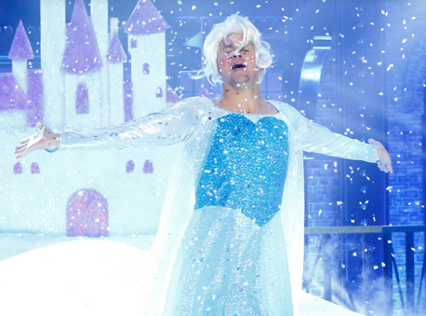 En este mismo show la actriz Anne Hathaway interpretó “Wrecking Ball” de Miley Cyrus, sólo que esta vez fue el turno de Tatum disfrazado de Elsa y cantando el “Let it Go”.