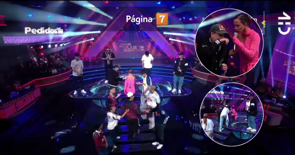 Posteriormente, tras confirmar que no se había golpeado, comenzó una rima junto a Teorema, relacionado con el programa de Chilevisión: “Hagamos una rima aunque estemos inundados”, dijo, tomándoselo con humor.