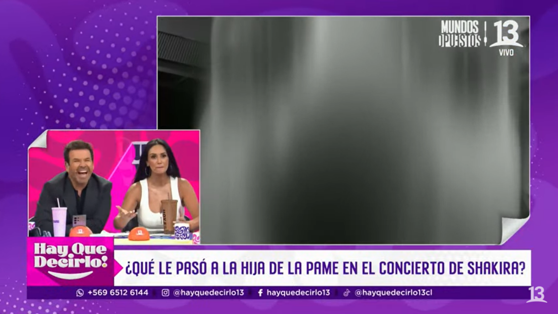 En el programa “Hay que decirlo”, se generó un divertido momento al censurar el rostro de la hija menor de Pamela Díaz durante la emisión de imágenes del concierto de Shakira. Ante la sorpresa, Ignacio Gutiérrez bromeó al respecto, mientras que Díaz reclamó en vivo, asegurando tener la tutela de su hija y autorizar su aparición en pantalla. A pesar de la situación, Felipe Vidal explicó que la edición buscaba proteger a la menor de edad, desatando risas en el panel.