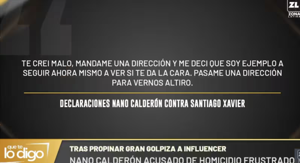 Filtran “amenazas” que envió Nano Calderón a influencer que se querelló por homicidio frustrado