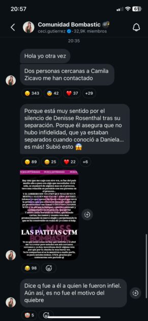 “Hay una que me cago con otro wn, se fue del país medio año, pues era algo que necesitaba vivir sola, se enamoró de alguien más en el proceso, tuvo una relación en paralelo con esa persona en el proceso…“, deslizó en la imagen que filtró la Miss Bombastic.