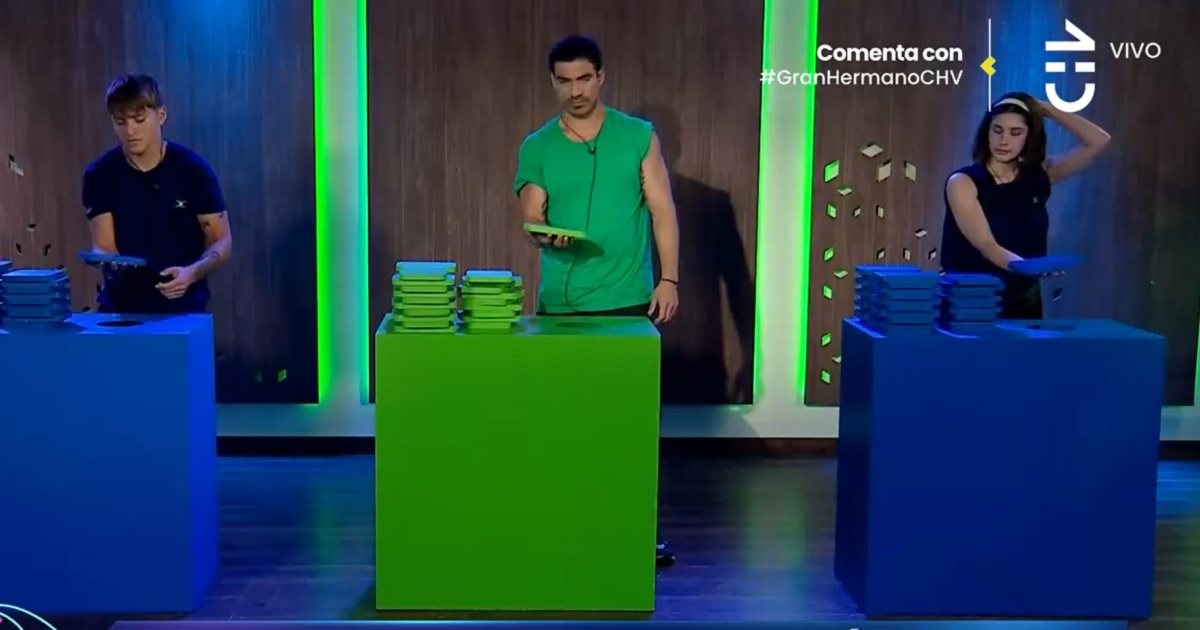 Sebastián, Hans e iCata disputaron la prueba final, para saber qué equipo (verde, amarillo o azul) se quedaría como el líder de la semana en Gran Hermano.