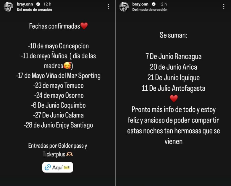 “Pronto más info de todo. Estoy ansioso de poder compartir estas noches tan hermosas que se vienen “, escribió en sus redes sociales, añadiendo que las entradas están disponibles en Goldenpass y Ticketplus .