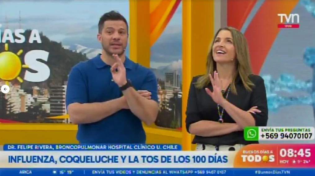 En Buenos Días a Todos de TVN, los animadores Monserrat Álvarez y Simón Oliveros conversaban sobre enfermedades respiratorias, cuando comenzó el sismo.