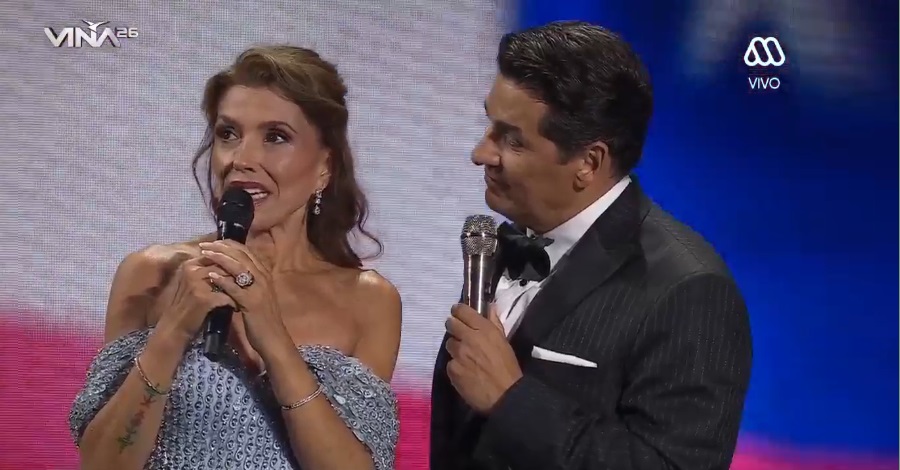 Carolina Arregui debutó como coanimadora de la competencia internacional durante la primera noche del Festival de Viña, acompañando a Rafael Araneda.