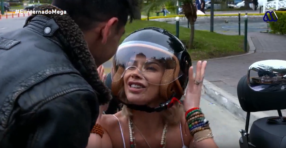 Todo ocurrió durante la presentación de los participantes, cuando Etienne Bobenrieth fue el encargado de recoger a Carla Ochoa para llevarla al encierro en su moto.