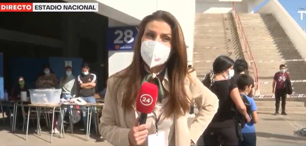 Durante la mañana, TVN desplegó sus equipos para la cobertura de las elecciones. Por ejemplo, Carolina Escobar se desplazó hasta el Estadio Nacional, recinto que cuenta con 36 mesas.