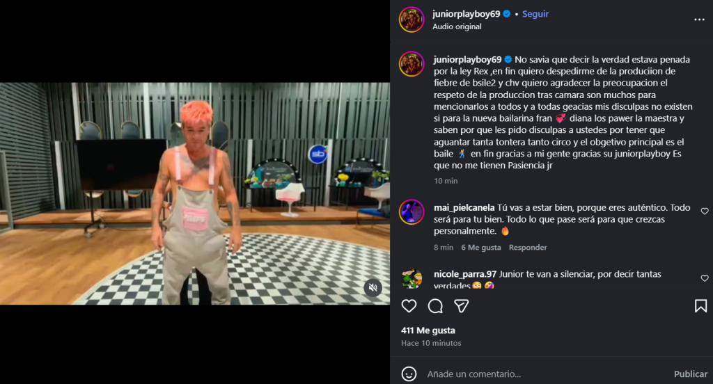 Por otra parte, en el pie de foto, Junior Playboy nombró -nuevamente- a Raquel Argandoña y, luego, agradeció al resto del equipo de Fiebre de Baile. “No sabía que decir la verdad estaba penada por la ley Rex”, escribió al inicio.