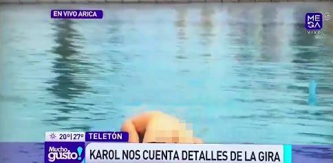 Pero además, le pusieron un desafío: debió lanzarse al agua por la Teletón, así que se sacó la polera, quedó en bóxer y cumplió.