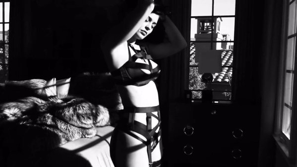 La novia de Tyga, posó para la cámara luciendo un atuendo súper hot: un brasier y una tanga de color negro. La estrella de 18 años, también presumió sus curvas en un video del “detrás de escena” disponible en su App para Iphone. En el clip se puede ver a la modelo pasearse sensualmente desde de una silla a una cama.