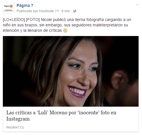 Junto a una foto en la que aparece con una visera chilena, la intérprete nacida en Córdoba dedicó duras críticas al modo de hacer las cosas en Chile; país que -según declaró- está cada día más cerca de su corazón.