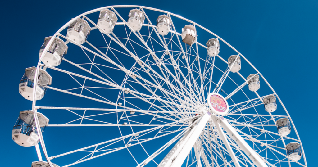 En específico, La Gran Rueda posee una estructura de acero de 33 metros de altura y está equipada con miles de luces LED.