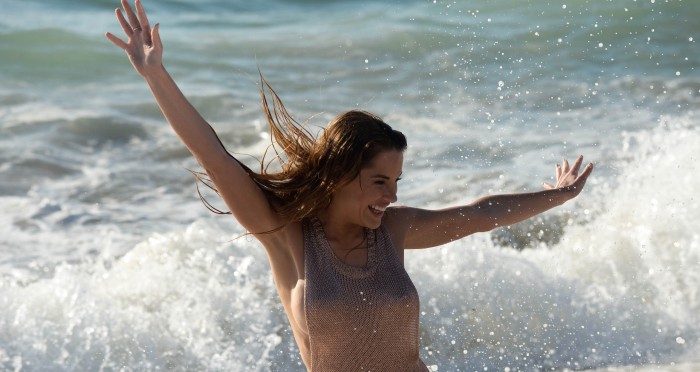 Las imágenes fueron tomadas en la playa Los Cañones, donde disfrutó del mar y la arena, además de posar en sugerentes poses apenas tapada con una túnica en tono rosado pálido.