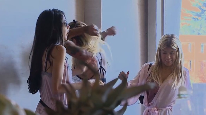 En el patio de la casa, Angie siguió llorando desconsoladamente, mientras Oriana criticaba la actitud de Felipe. “Es un idiota, porque un tío que te hace eso, después de 800 veces que se lo has dicho, ¡no!… tienes que decirle que se acabó”, “No lo pesques más”, agregó Fernanda.