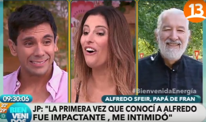 Cuando los novios, que se casan en marzo, estaban en el estudio, la producción del matinal realizó un contacto con el padre de Francisca, el ex candidato presidencial, ecologista y guía espiritual Alfredo Sfeir.