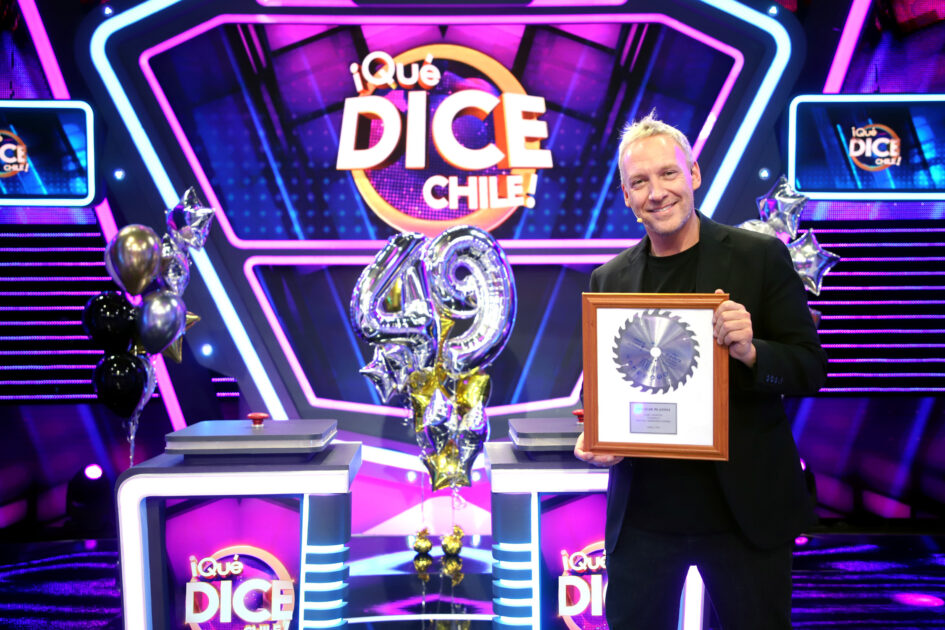 Cárcamo también valoró el otro regalo que recibió: un curioso “disco de platino” como premio porque su jingle de Qué dice Chile, el cual consiguió acumular más de 5 visitas en Spotify.