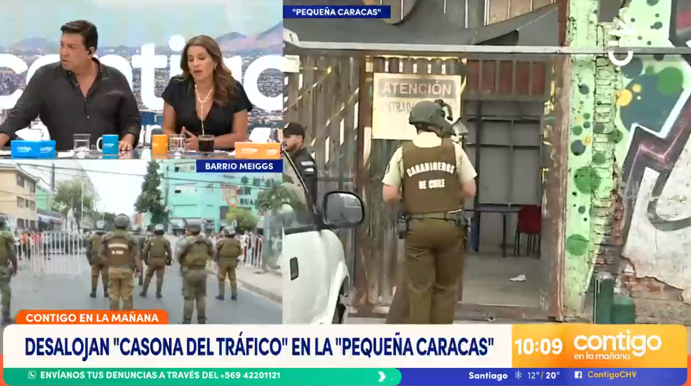 Más adelante, Contigo en la Mañana mostró en vivo el desalojo de la denominada “Casona del tráfico“, en la “Pequeña Caracas”, ubicada en la comuna de Estación Central.
