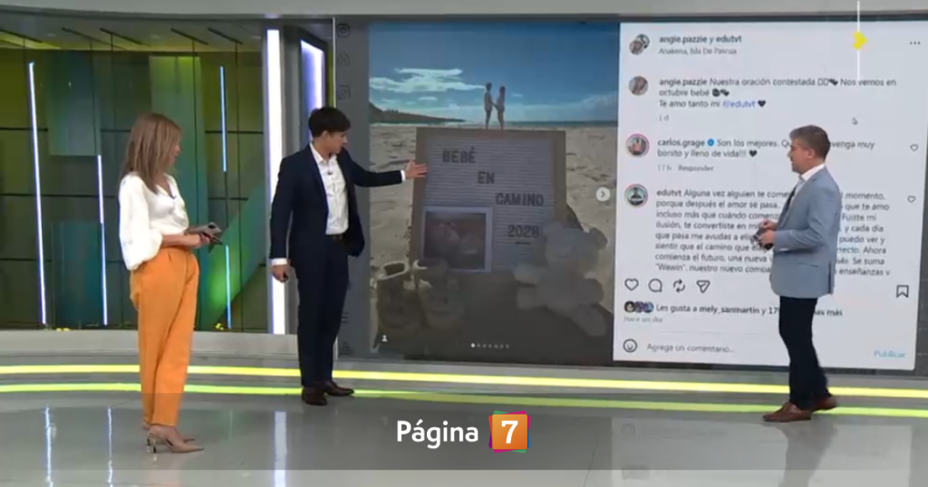 “Ya vamos en 4 meses, así que estamos felices con la Angie; estamos emocionados. De hecho, ese fue el motivo de ir a la isla (de Pascua) porque nos faltaba solamente contarle a mi suegro, y llegamos de sorpresa el sábado. Esto fue solamente un ir y volver rápidamente, pero fue hermoso”, comentó el meteorólogo.