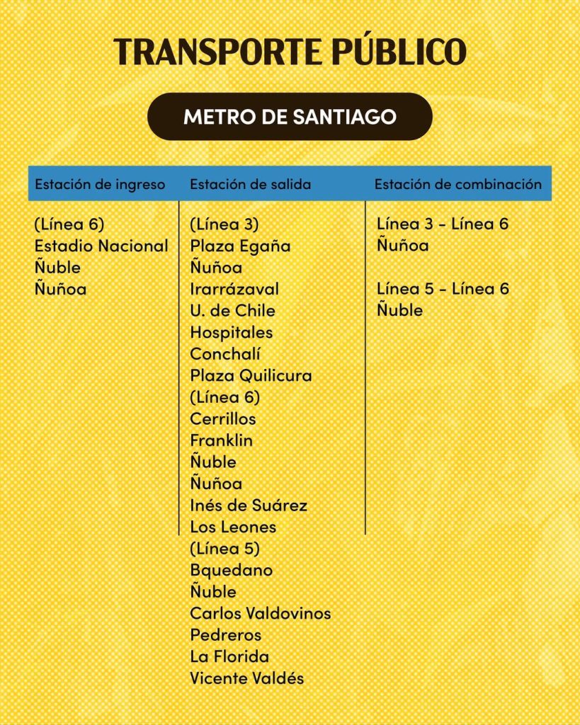 *Desde la organización aclararon que el ingreso al Metro después del concierto solo se podrá realizar por las estaciones Estadio Nacional, Ñuble y Ñuñoa, mientras que el resto funcionará únicamente para salida de pasajeros.