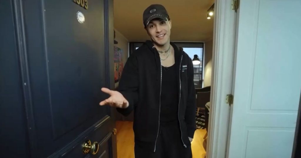 Al entrar en su hogar, lo primero que llamó la atención fue una moderna escultura blanca, conocida como KAWS.