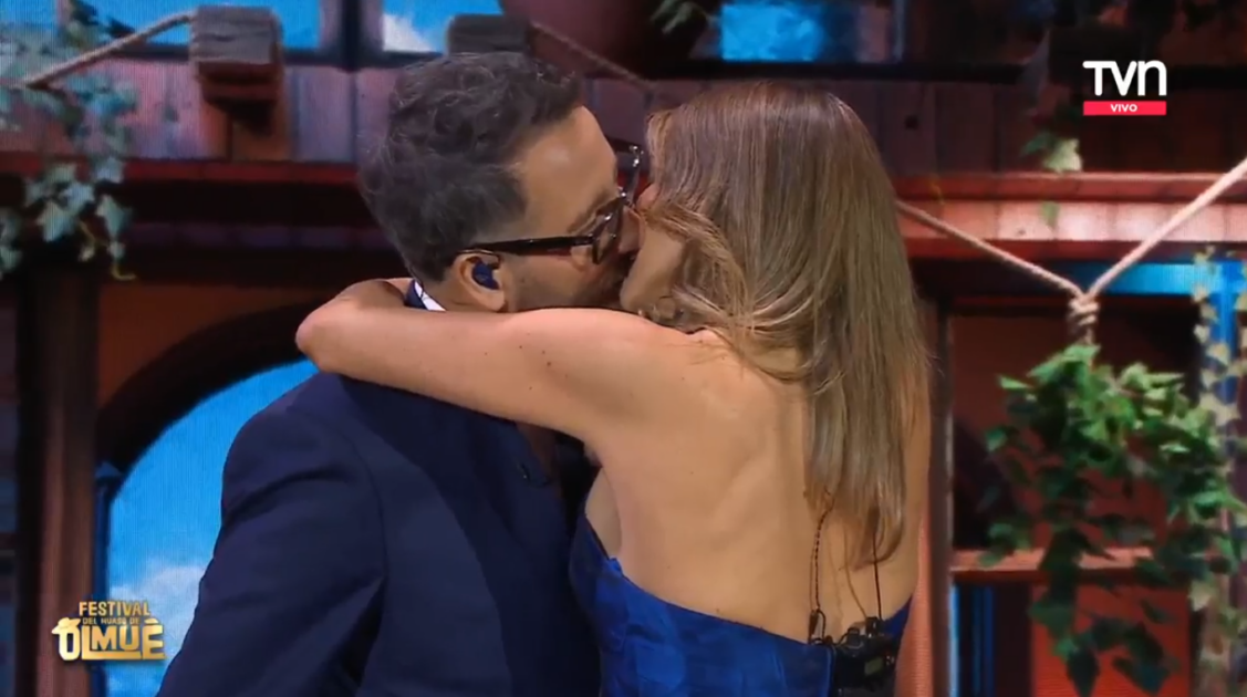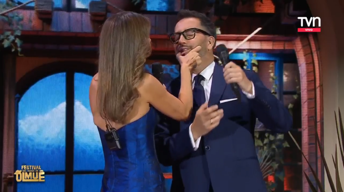 “¡No pinchen a Nacho!”, expresó la comunicadora, después de cumplir el coqueto rito con Eduardo Fuentes. Sin embargo, la transmisión de TVN lo mostró de todas formas.