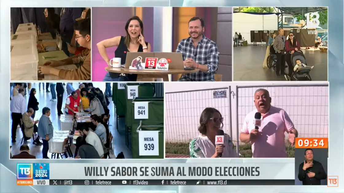Willy Sabor y Chantal Aguilar sufrieron un hilarante chascarro durante la cobertura de Teletrece, durante las elecciones de este sábado.