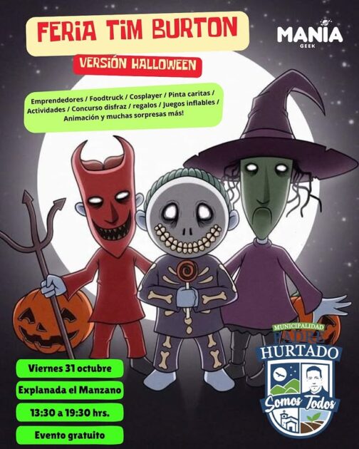 Otra alternativa para los fanáticos de lo oscuro es la Feria Tim Burton en Padre Hurtado, donde habrá stands, cosplay, arte y productos inspirados en el universo del director de El extraño mundo de Jack y Beetlejuice.