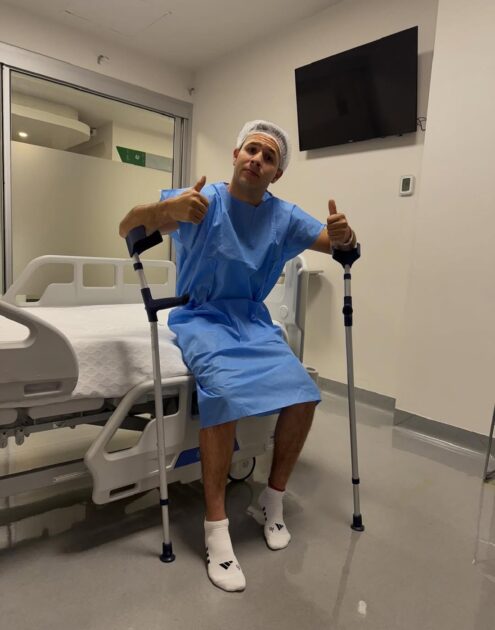 Así lo evidenció este miércoles su padre a través de redes sociales, donde subió una foto de Junior en la clínica, usando muletas.