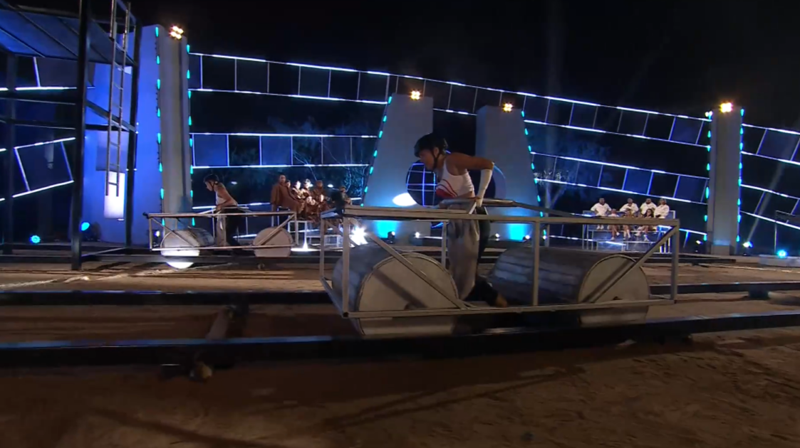 La competencia consistía en encestar seis pelotas y rescatarlas en lo alto de una torre, utilizando un carro de tracción humana.