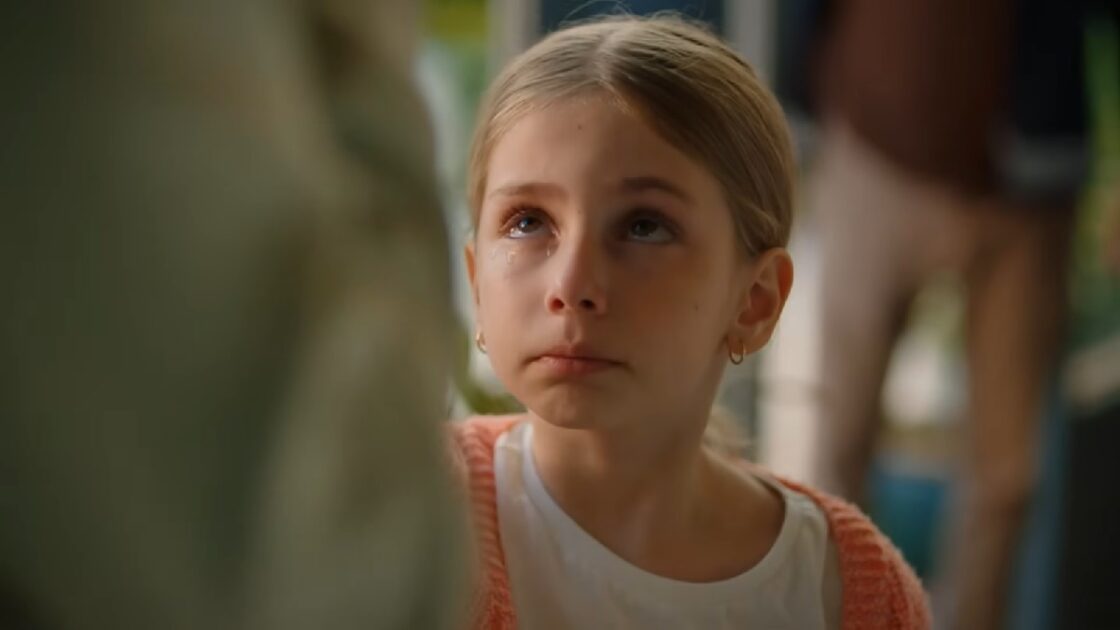 Con lágrimas en los ojos, la niña pone una mano sobre su corazón y luego la lleva al pecho de Dila, dándole a entender que le tiene cariño, pese a lo cruel que ella ha sido como madre.