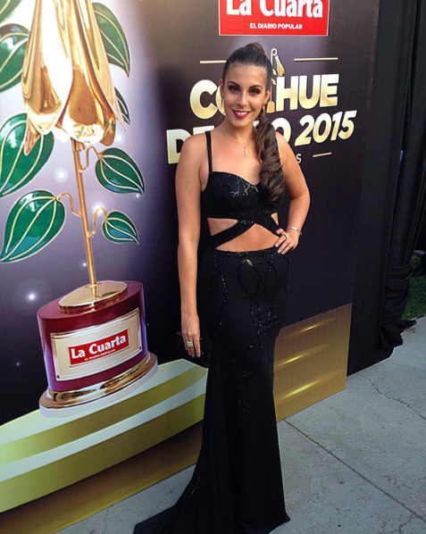 8.- Marcela Vacarezza: Se lució también caminando por la alfombra con un vestido negro rasgado a un costado, de 3 millones de pesos; zapatos de 750 mil pesos; y un anillo de 6 millones de pesos, completando un look con $9.750.000.
