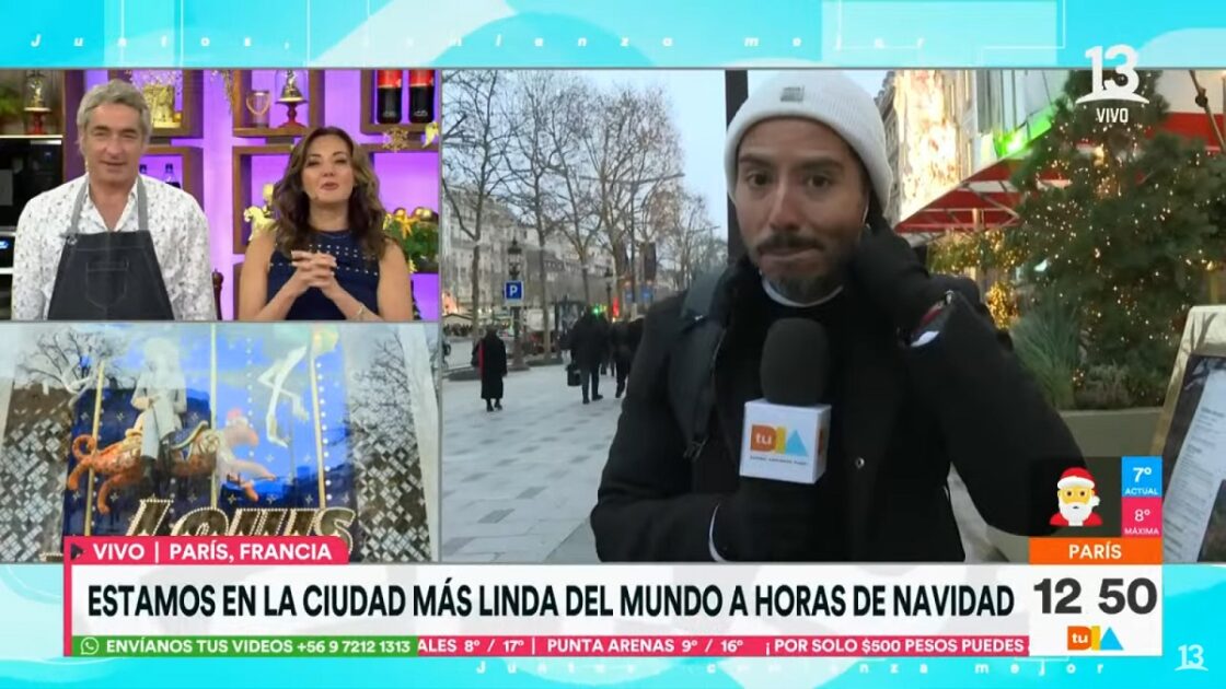 Este lunes 23 de diciembre, el notero de Tu Día, Rodrigo Pérez, dejó de lado las temáticas policiales para sorprender con un despacho desde París.
