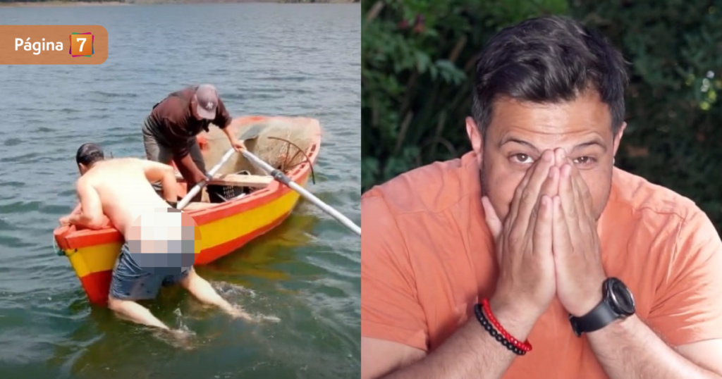 No obstante, al intentar subirse al bote, tuvo un serio problema con su ropa, quedando casi desnudo del torso para abajo: “¡Se me ve el poto!”, exclamó el periodista.