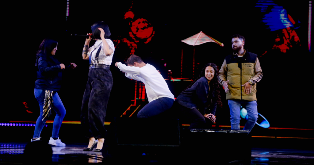 Sin embargo, casi al final del ‘bis’ se vivió una situación inesperada, cuando la comediante invitó a varias personas del público a subir al escenario para participar en un último chiste que terminó en un imprivisado baile grupal.