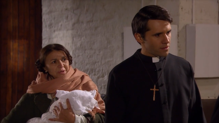Tras el nacimiento de la pequeña, Armando (Álvaro Rudolphy) y el padre Reynaldo (Mario Horton) dieron inicio a su plan de dar en adopción a la recién nacida.