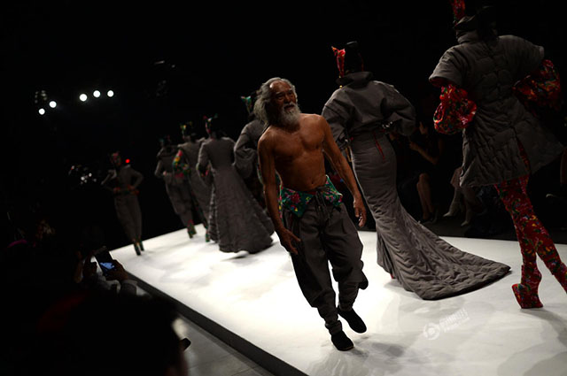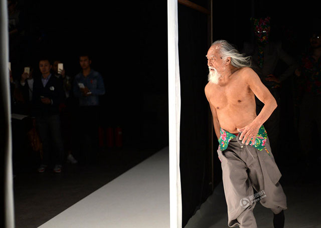 El hombre se robó todas las miradas en la pasada semana de la moda de China, cuando desfiló para el diseñador Sheguang Hu a sus casi 80 años de edad.