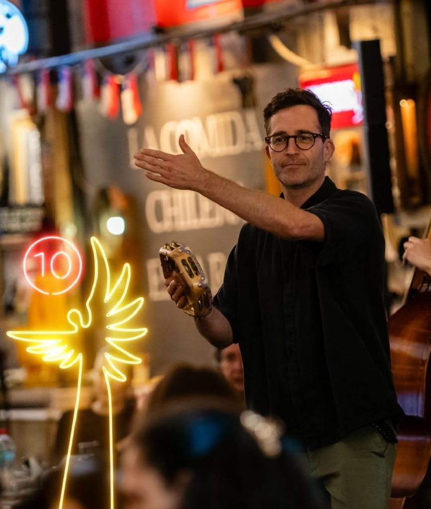 Es un trabajo que llevo haciendo más de 20 años. Partí investigando en la universidad sobre las cuecas y la poesía chilena. Es algo que realmente me fascina, así que súper agradecido de poder compartirlo con mis coleguitas acá”, comentó.