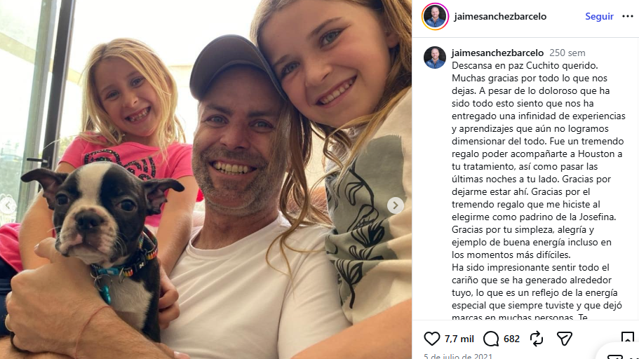 Pero fue tras su partida cuando su historia quedó plasmada con mayor profundidad. Su padre, Jaime Sánchez, escribió un emotivo in memoriam donde reconstruyó los últimos meses de vida de su hijo.