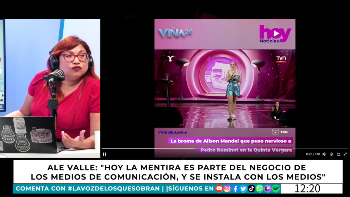 Ale Valle sobre Alison Mandel: "Me gusta más el humor como herramienta de reflexión, pero le fue bien, la gente disfrutó su rutina, pero es un humor que no incomoda, con estereotipos y parece que en Viña eso funciona, aunque creo… pic.twitter.com/USpU8nz7Ra