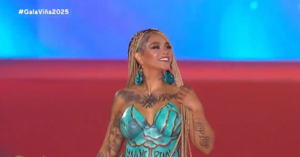 Flor de Rap impactó con su look en la Gala de Viña 2025 con su elección de cuerpo pintado para desfilar por la alfombra roja.