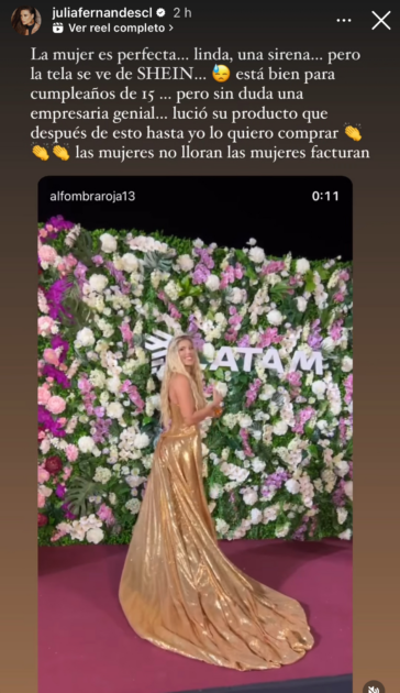 “La mujer es perfecta, linda, una sirena… pero la tela se ve de Shein. Está bien para un cumpleaños de 15 años” , lanzó sin filtro.