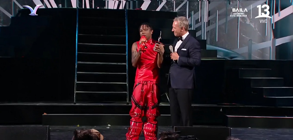 “Protagonista de una de las mayores revoluciones musicales de nuestro país, no podía estar ausente en la Quinta Vergara. Hoy está para coronar su carrera y empezar a volar con sus sueños internacionales”, indicó el conductor de Canal 13 cuando apareció en el intermedio.