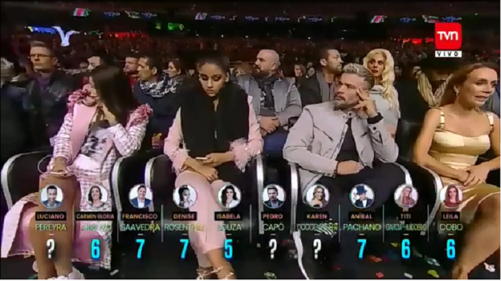 El gesto del ‘monstruo’ no sólo incomodó a los animadores, sino que también al jurado. Mientras salían en pantalla para anunciar las notas de las competencias de canto ninguno sonrió.